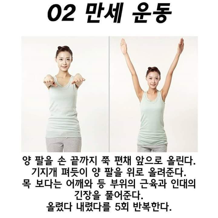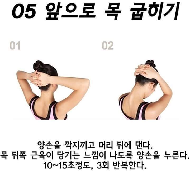 하루 3번, 그리고 오래 일하시는 분이라면 일하는 틈틈이학창시절 체조할 때의 기억을 떠올려 목 스트레칭을 해주세요~ 거북목은 예방할 수 있는 어렵지 않은 습관입니다.